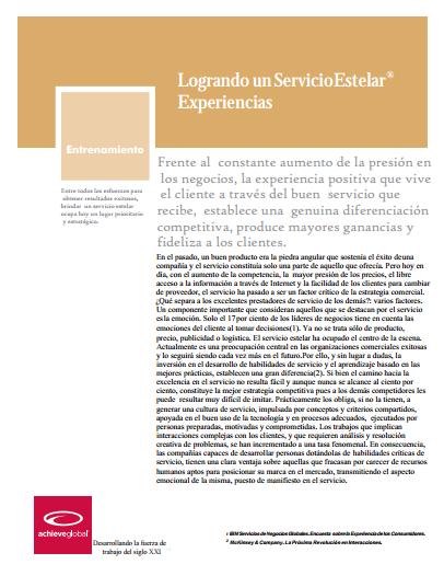 AchieveGlobal creó el sistema Logrando un Servicio Estelar® basándose en años de investigaciones, de las cuales participaron cientos de organizaciones líderes de todo el mundo. Este largo proceso permitió descubrir los principales temas de negocios que afectan el servicio al cliente hoy en día. Adicionalmente, también logró identificar un conjunto de habilidades necesarias para crear y sostener una verdadera cultura de servicio. El sistema Logrando un Servicio Estelar® fue diseñado a partir de esa profunda comprensión acerca del servicio y de las necesidades de los clientes.